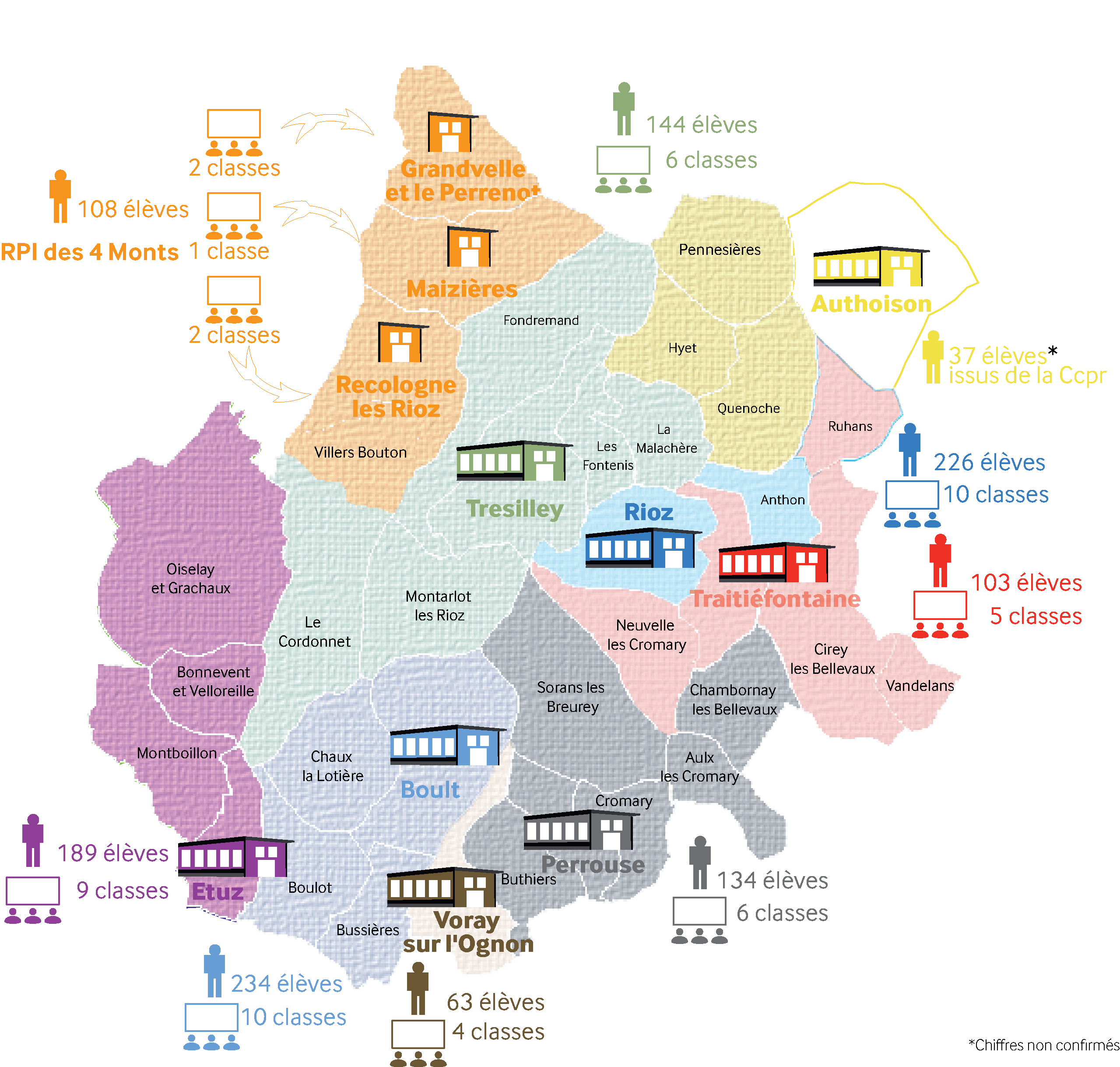 Depuis le 1er janvier 2014, la Communauté de Communes du Pays Riolais (Ccpr) exerce la compétence scolaire sur l’ensemble du territoire communautaire. L’exercice de cette compétence se traduit notamment par la gestion au quotidien de 10 écoles et pôles éducatifs qui maillent le territoire. Plus de 1300 élèves sont scolarisés sur le territoire. Ils sont répartis en 57 classes.